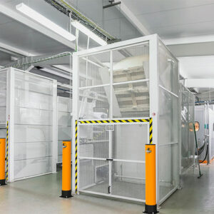Bolardo de protección industrial para marcar y asegurar áreas peligrosas en interiores y exteriores.