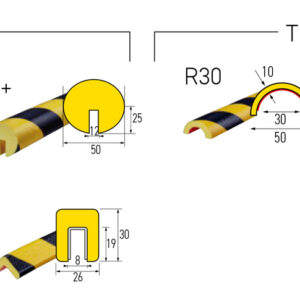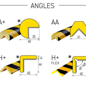 – Señalizan las zonas peligrosas (ángulos, muros, pasillos…) tanto en interior como en exterior gracias a su rayado de seguridad amarillo y negro.- Gran flexibilidad.