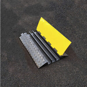 El protector de cables para suelo asegura las zonas con mucho tránsito de vehículos. Reduce la velocidad de los vehículos mientras protege eficazmente los cables y evita accidentes.